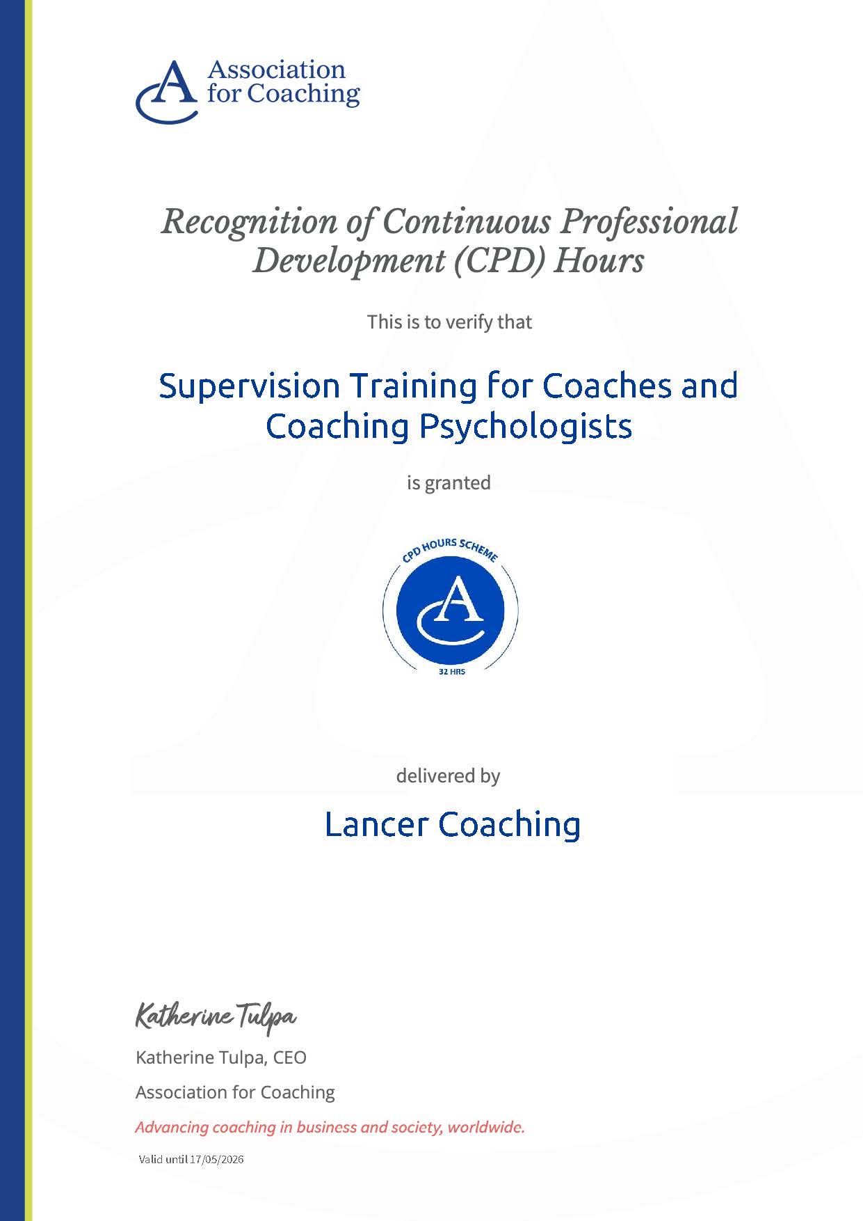 This course is recognised by the Association for Coaching and counts as 32 CPD hours.